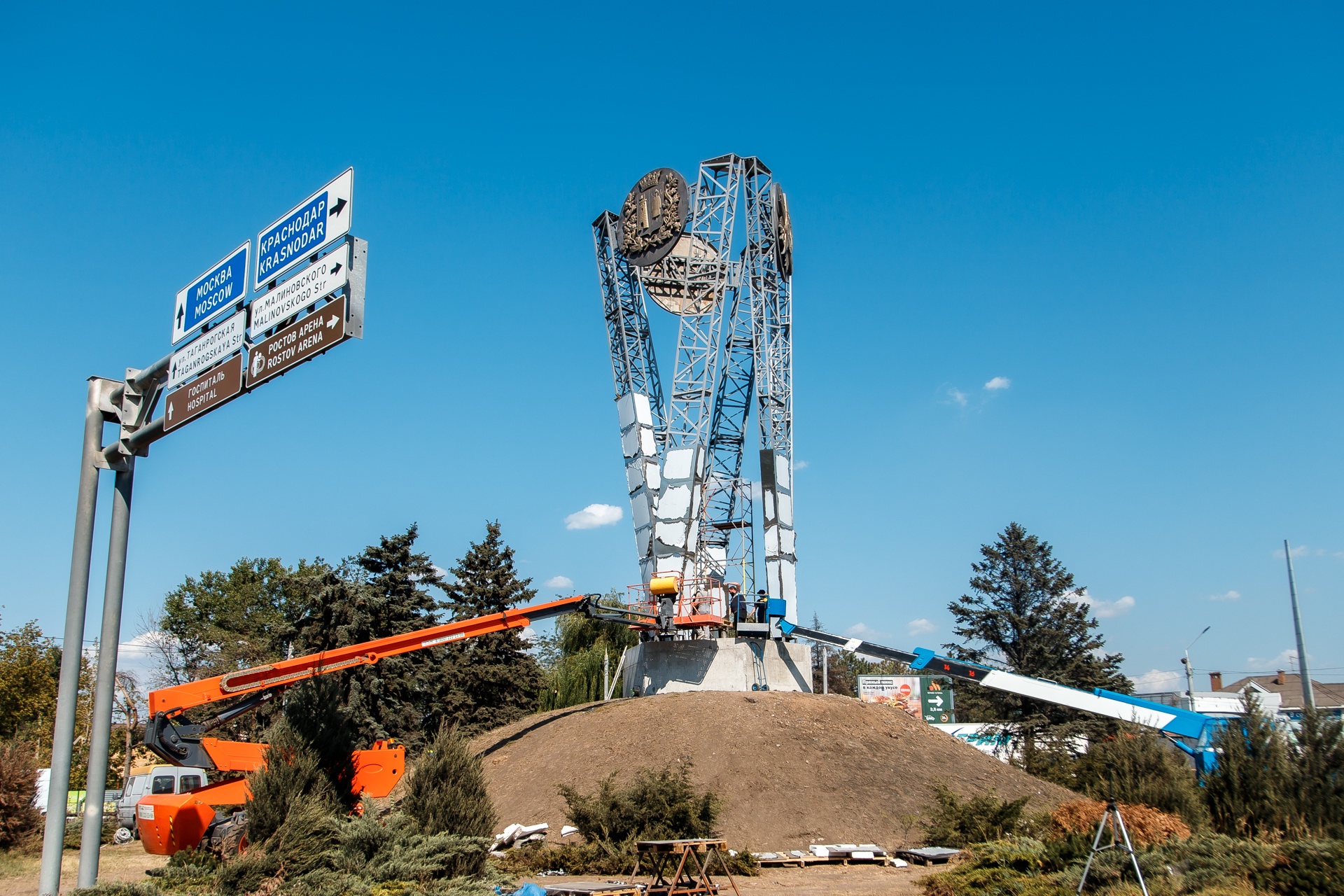 24 июля мастерскую скульптора Сергея Олешни посетил глава администрации Ростова-на-Дону Александр Скрябин, чтобы увидеть, как создается новая стела для въезда в город со стороны улиц Таганрогской и Малиновского. Новая въездная группа заменила «футбольный мяч с флагами». Инициатива по установке нового памятного знака принадлежит активной группе жителей Октябрьского района.
