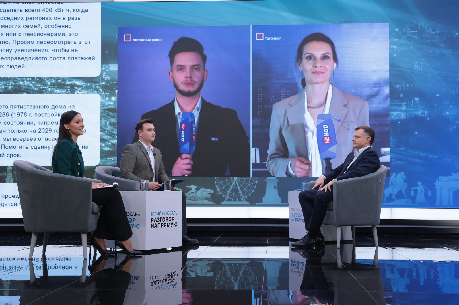 Жители разных населённых пунктов жаловались на работу общественного транспорта и состояние остановочных комплексов, спрашивали о строительстве ливневок в Ростове, ремонте моста между Ростовом и Батайском, состоянии дорог, восстановлении автовокзала в Сальске.