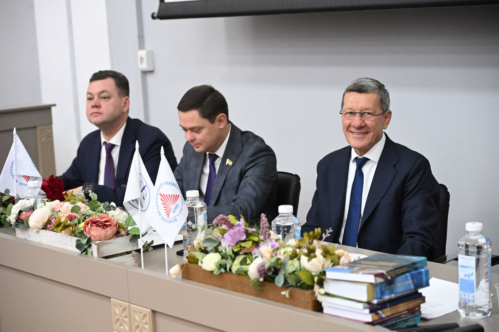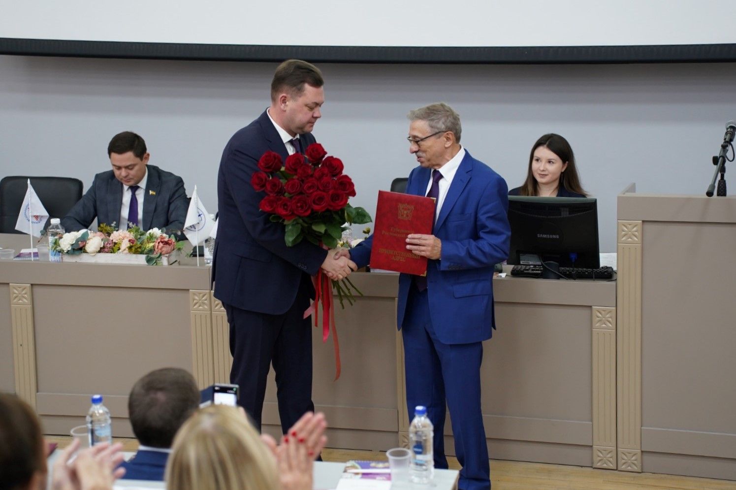 Заместитель губернатора Андрей Фатеев вручил приветственный адрес губернатора Ростовской области Николаю Семеновичу Бондарю – руководителю Научно-образовательного центра судебного конституционализма ЮФУ, доктору юридических наук, профессору, заслуженному юристу РФ.