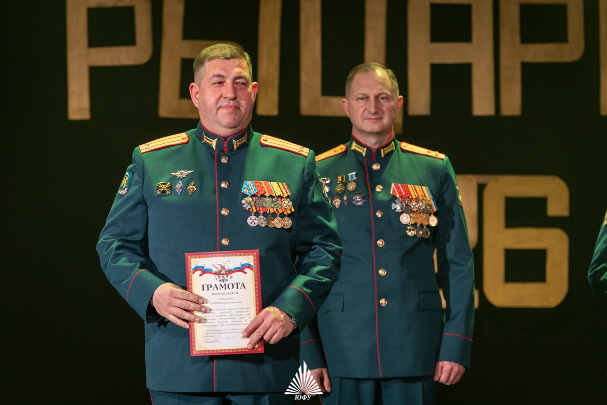 Мероприятие началось с официальной части. В торжественной обстановке офицерам были вручены благодарности от ректора ЮФУ в честь празднования 110-летия вуза, а затем доведены выписка из Указа Президента Российской Федерации и приказ начальника ВУЦ о поощрении личного состава.