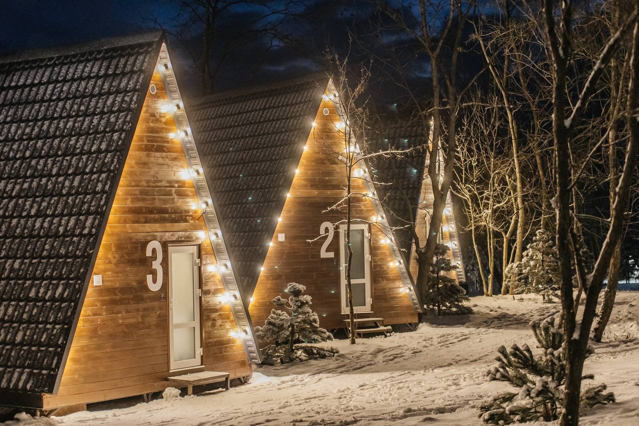 Для вас открыт большой всесезонный эко-глэмпинг с уютными лесными домиками А-фреймами, барнхаусами и отелем. Здесь каждая семья найдёт, пожалуй, идеальный вариант размещения. В домиках есть всё необходимое для вашего комфорта.