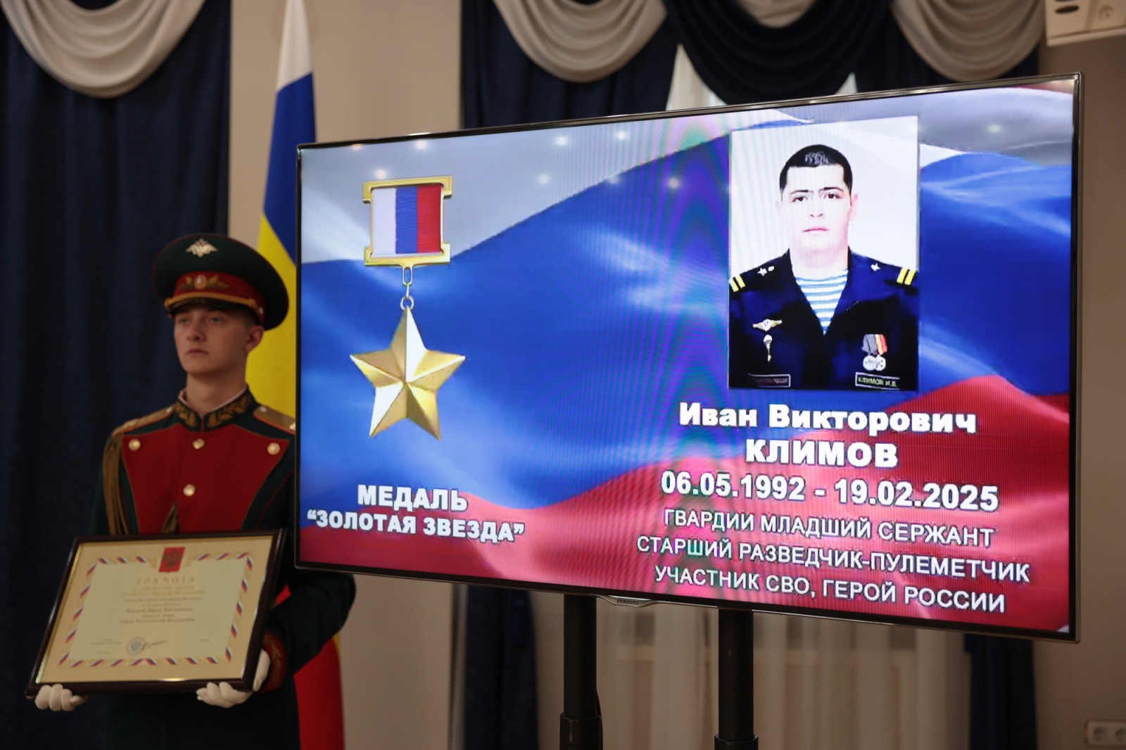 Младшему сержанту Ивану Климову высокое звание Героя России было присвоено посмертно – за мужество, проявленное в ходе специальной военной операции. В своем последнем бою, даже будучи раненым, Иван Климов героически сражался с врагом. И погиб, как герой, закрыв своим телом товарищей от осколков разорвавшегося рядом снаряда. В Ростове у него осталась семья – супруга и двое маленьких детей.