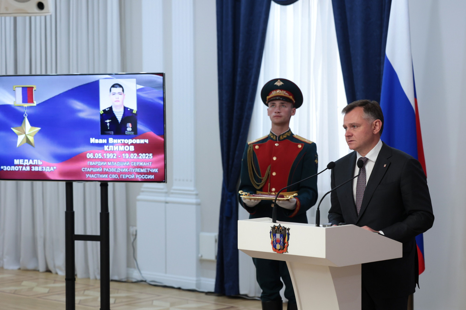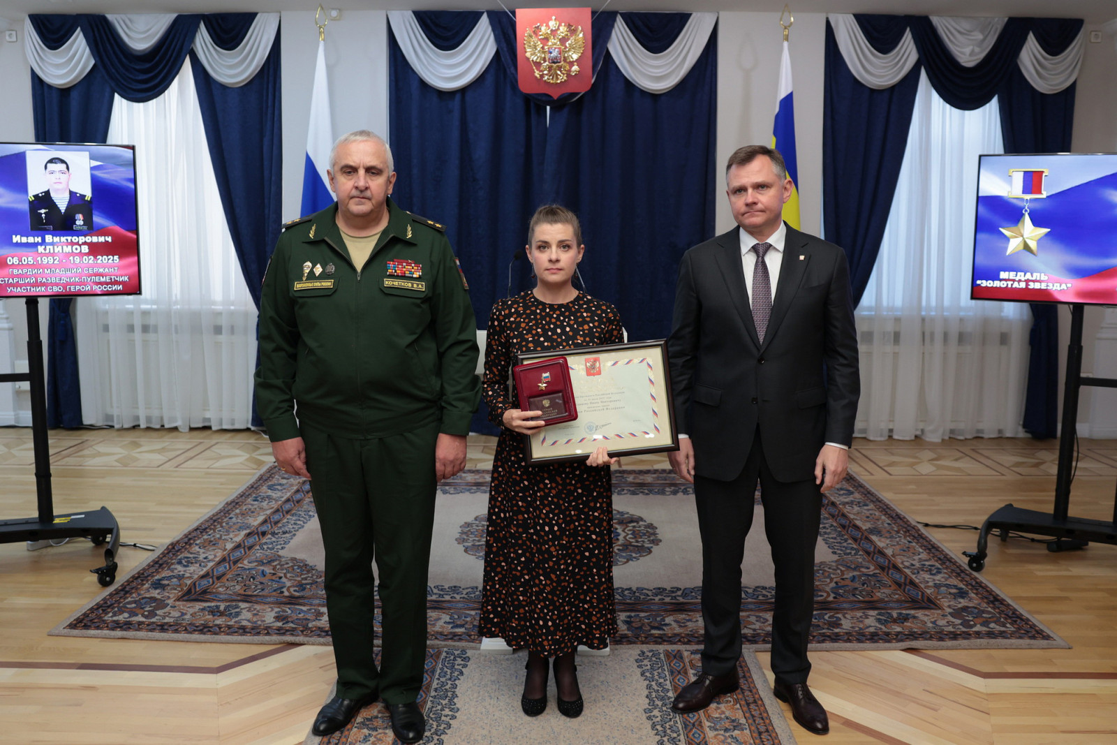 Вдове героя высшую государственную награду передали губернатор Ростовской области Юрий Слюсарь и исполняющий обязанности командующего войсками Южного военного округа Владимир Кочетков.