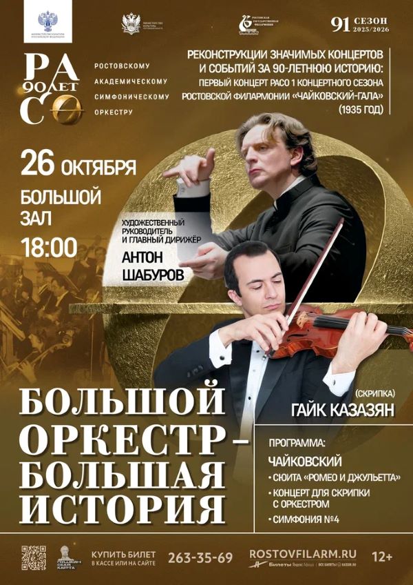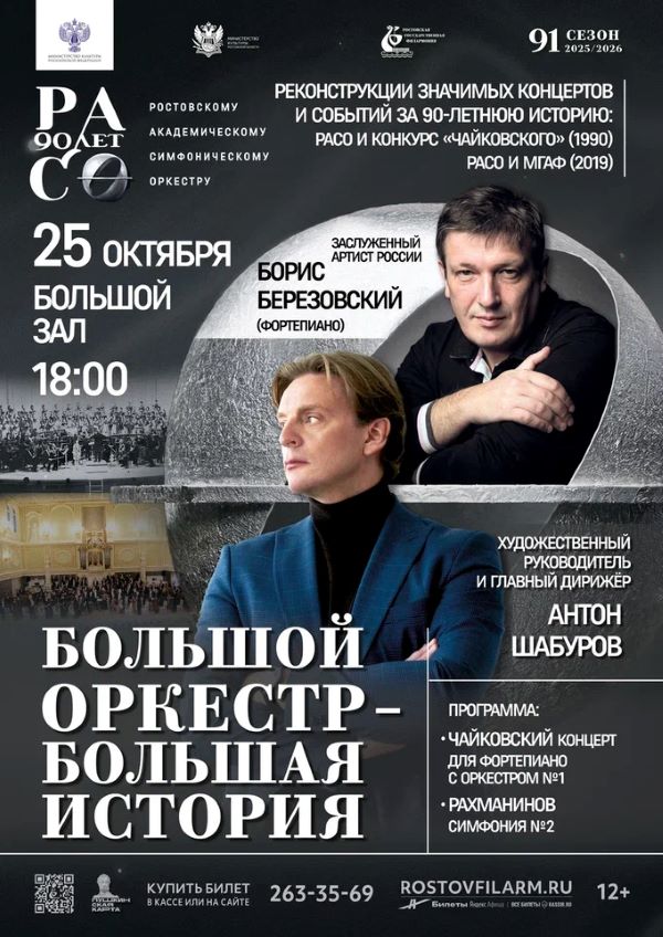 Триумф. Станьте свидетелем воссоздания легендарного концерта 1990 года, который принес победу пианисту Борису Березовскому. Маэстро лично приедет в Ростов, чтобы вновь сыграть с оркестром тот самый победный концерт Чайковского и Рахманинова.